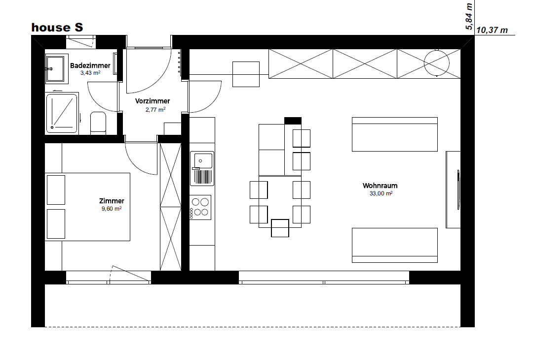 Bruttofläche: 70,93 m2 (einschließlich mit Terrasse; 1m Überhang)